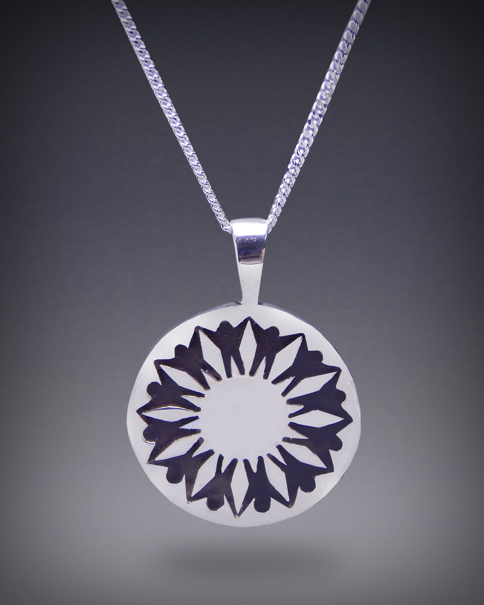 $125.00Sterling Silver Pendant ( 1-1/16 inches tall, by 7/8 inches wide ) with an 18 ” Sterling Silver “curb style” chain INCLUDED.