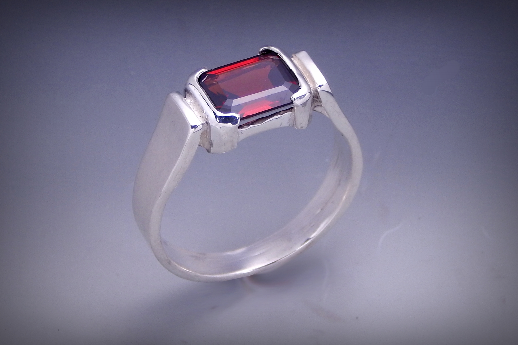 Sterling Silver with Garnet ( 9x7mm 3.4ct. emerald cut )