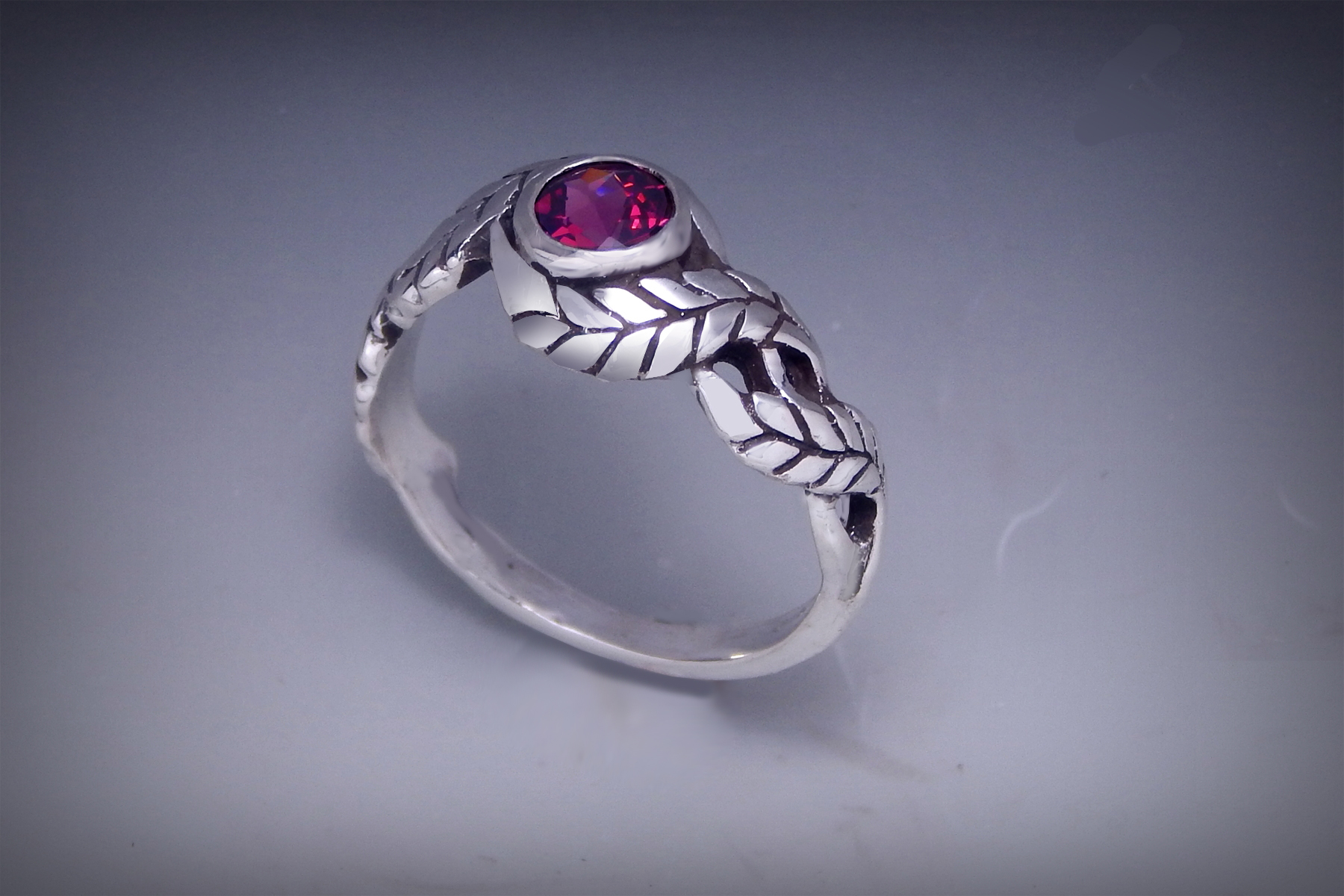 Delicate 14k ring with a Leaf cradling a gemstone..!!